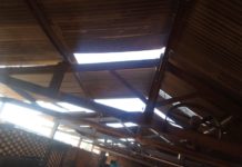 Vento destelha barracão