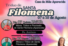 A Paróquia Nossa Senhora Aparecida, realizará dos dias 7 a 10 de agosto o Tríduo da Família em honra a Santa Filomena, com o tema central: “Com Santa Filomena queremos estar ancorados em Cristo, que é a nossa esperança”....