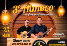 Acontece no final deste mês o 3º Almoço da Comissão Organizadora da Romaria dos Cavaleiros de Sant’Ana. O evento será realizado no dia 25 de maio, um domingo, no salão da Igreja São Joaquim, a partir das 10h30.