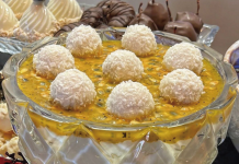 Manjar de Raffaello cremoso com geleia de maracujá do Kadu Barros