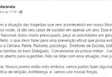 O prefeito de Itobi Joaquim Cândido Filho, o conhecido Maranata (MDB) recorreu às redes sociais para externar sua preocupação com os casos de suicídio que foram registrados no município que administra neste ano. Em uma cidade com...