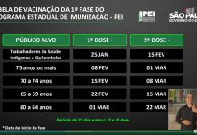 Primeira fase prioriza profissionais de saúde e pessoas com 60 anos ou mais; 4 milhões de doses serão reservadas a outros estadosO Governador João Doria lançou nesta segunda-feira (7)...