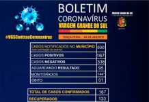 Confirmados mais cinco casos de covid-19 na cidade, que agora soma 131 pacientes diagnosticados;...