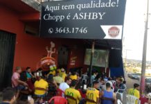 Na Império Choperia, o pessoal se reuniu para acompanhar o jogo. A torcedora Marcela foi a...