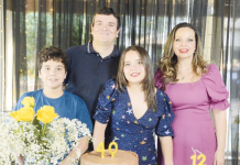 MarcelMarcel César Ronqui, do supermercado Fort Lar, troca de idade neste sábado, dia 24, recebendo os cumprimentos da esposa Rárita e do filho Bento. Foto: Arquivo Pessoal