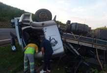 Caminhão capotou e motorista ficou preso nas ferragens