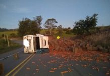 Um caminhão carregado de cenouras que seguia pela SP-215 no sentido distrito de São Roque da Fartura a Vargem Grande do Sul acabou tombando ao fazer uma curva na altura do km 22 da via, espalhando toda a carga...