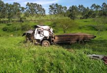Caminhão fica destruído após tombar na estrada de São Roque