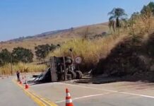 Caminhão tomba na estrada para São Roque